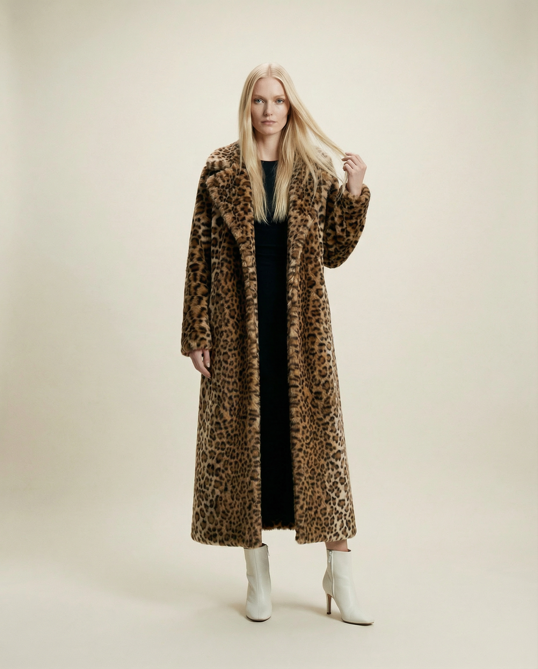 Lyra is your unapologetic leopard moment. The long, straight silhouette and soft, golden faux-fur turn every sidewalk into a runway while actually keeping you warm on cold city nights. It’s the coat you reach for when you want classic bombshell energy with zero effort.