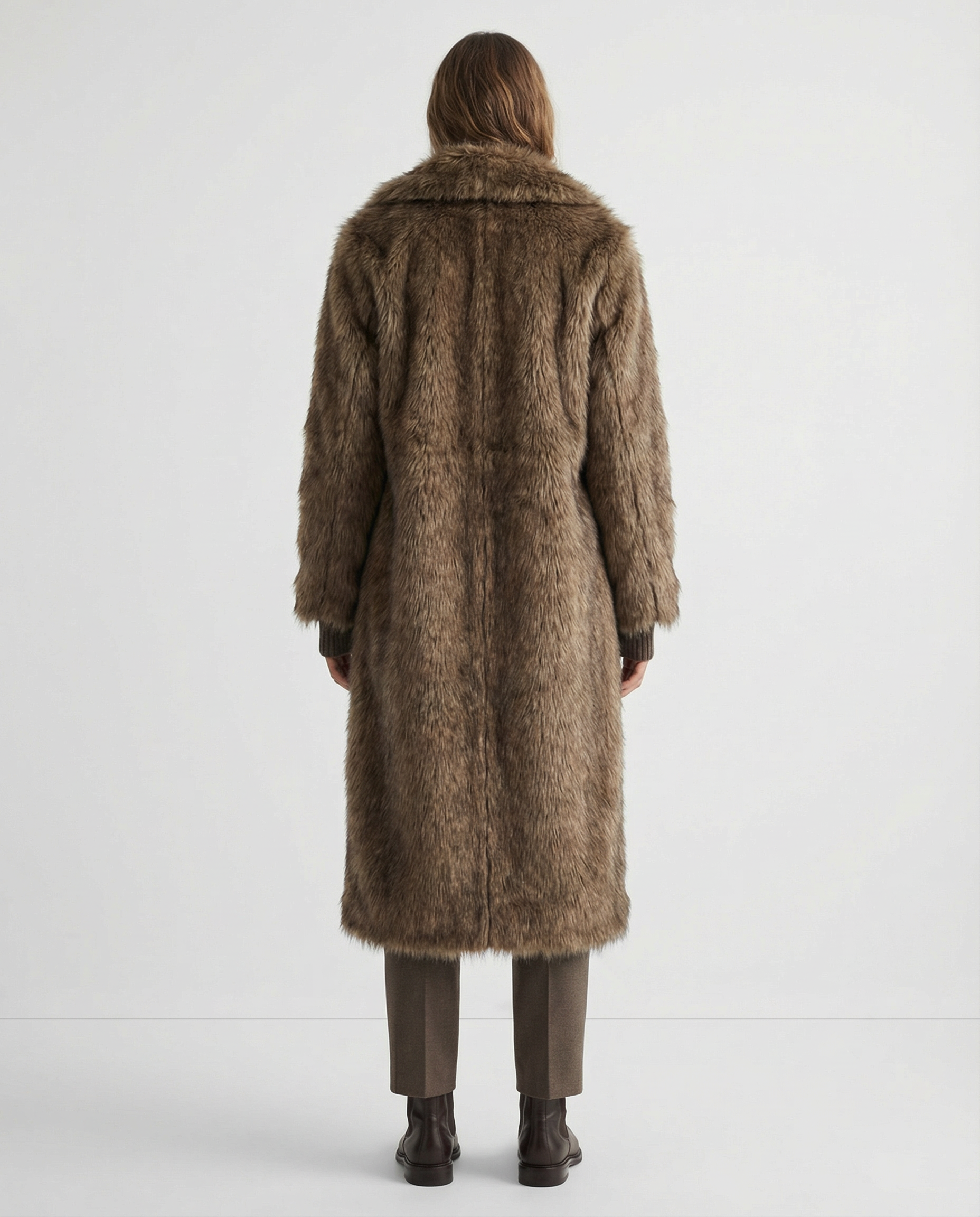 • Longline, straight-cut faux-fur coat